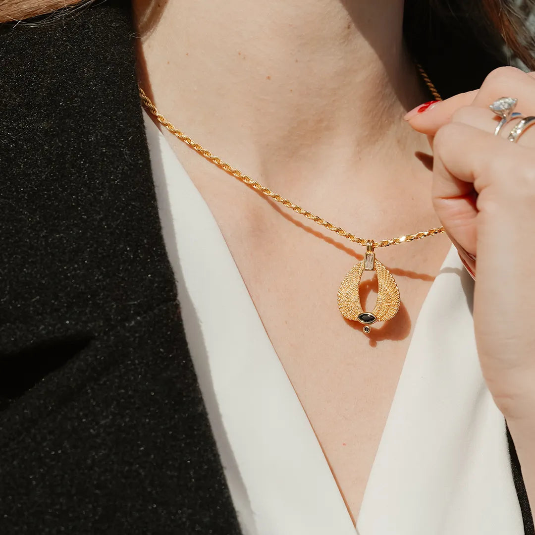 With its elegant, wing-like form, this Gold Vermeil piece becomes a quiet emblem of growth, perseverance, and grounded grace.